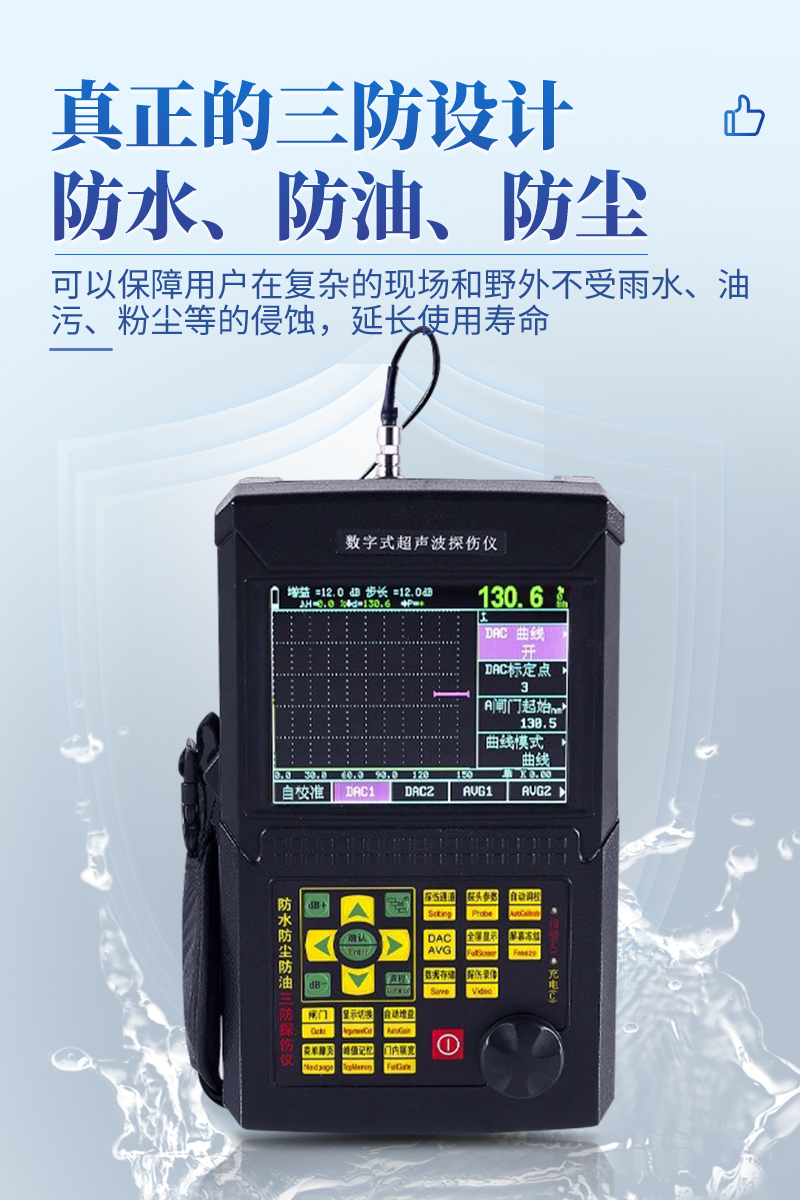 ● 具有防水、防油、防塵三防功能,使用壽命延長(zhǎng),是常規(guī)探傷儀使用壽命的幾倍。