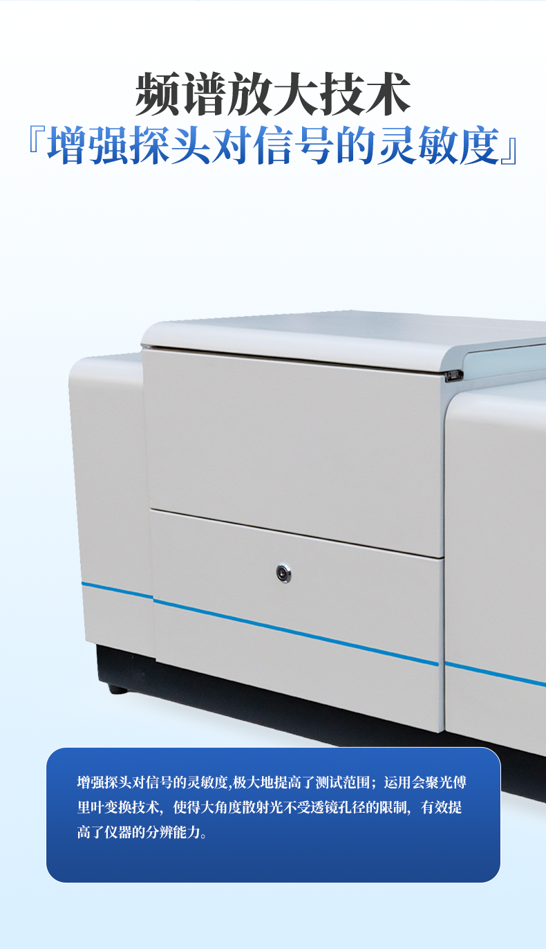 | 頻譜放大技術(shù) | 增強(qiáng)探頭對(duì)信號(hào)的靈敏度,極大地提高了測(cè)試范圍;運(yùn)用會(huì)聚光傅里葉變換技術(shù),使得大角度散射光不受透鏡孔徑的限制,有效提高了儀器的分辨能力。 |