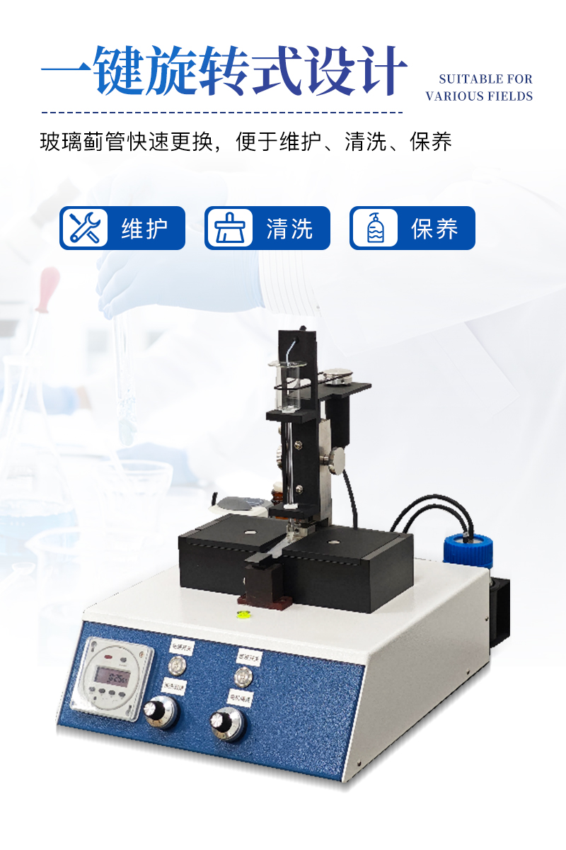 ?。?)一鍵旋轉(zhuǎn)式設(shè)計(jì),玻璃薊管快速更換,便于維護(hù)、清洗、保養(yǎng);
