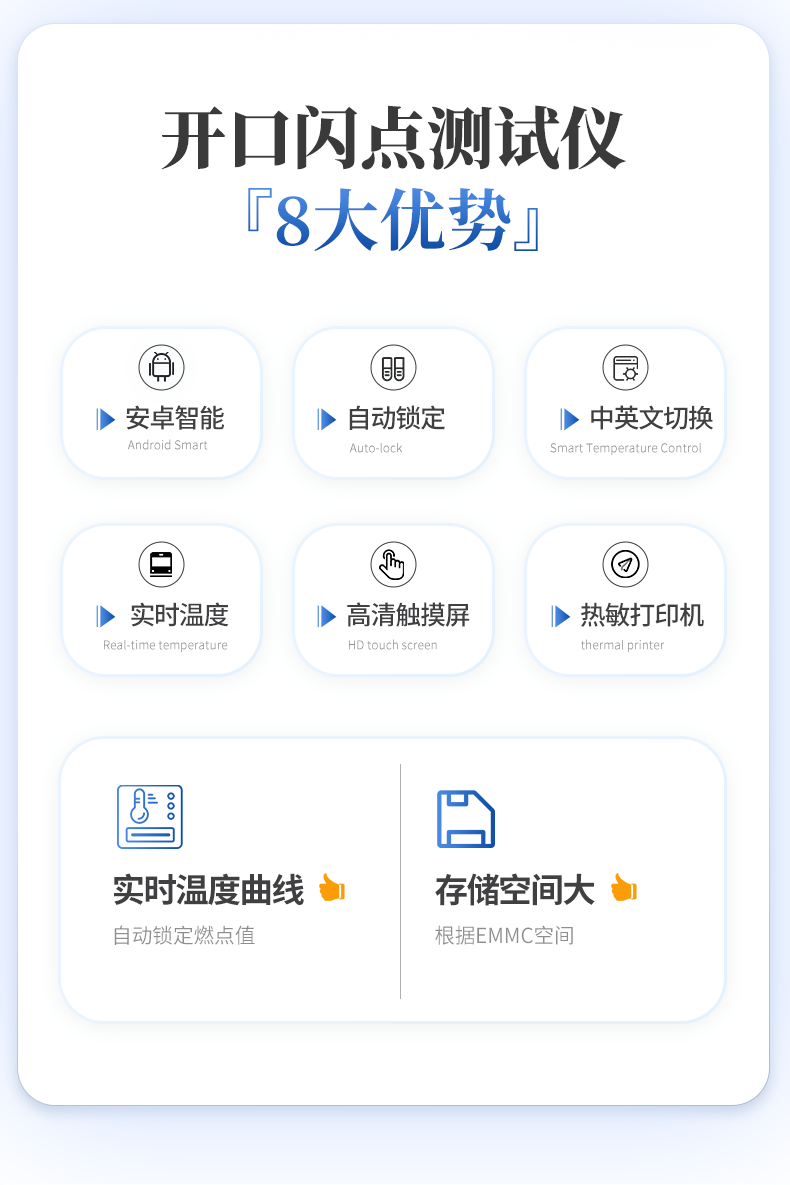 全自動開口閃點和燃點測定儀主要用于石油產(chǎn)品和其他易燃液體在特定條件下,與空氣混合后遇火源發(fā)生閃火和燃燒的**溫度的儀器。