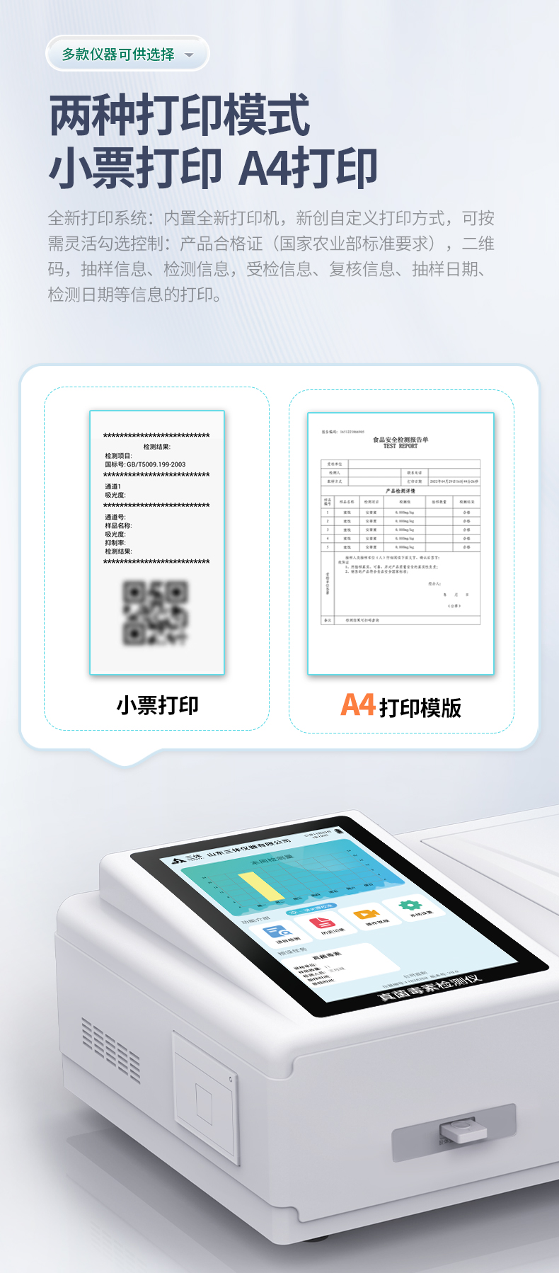 10、A4紙版本報(bào)告打印功能:設(shè)備擁有兩種結(jié)果展示方式,可以自動(dòng)生成A4打印模板和小票打印模板兩種樣式,可通過(guò)WiFi及網(wǎng)線等方式鏈接外置打印機(jī)可進(jìn)行打印