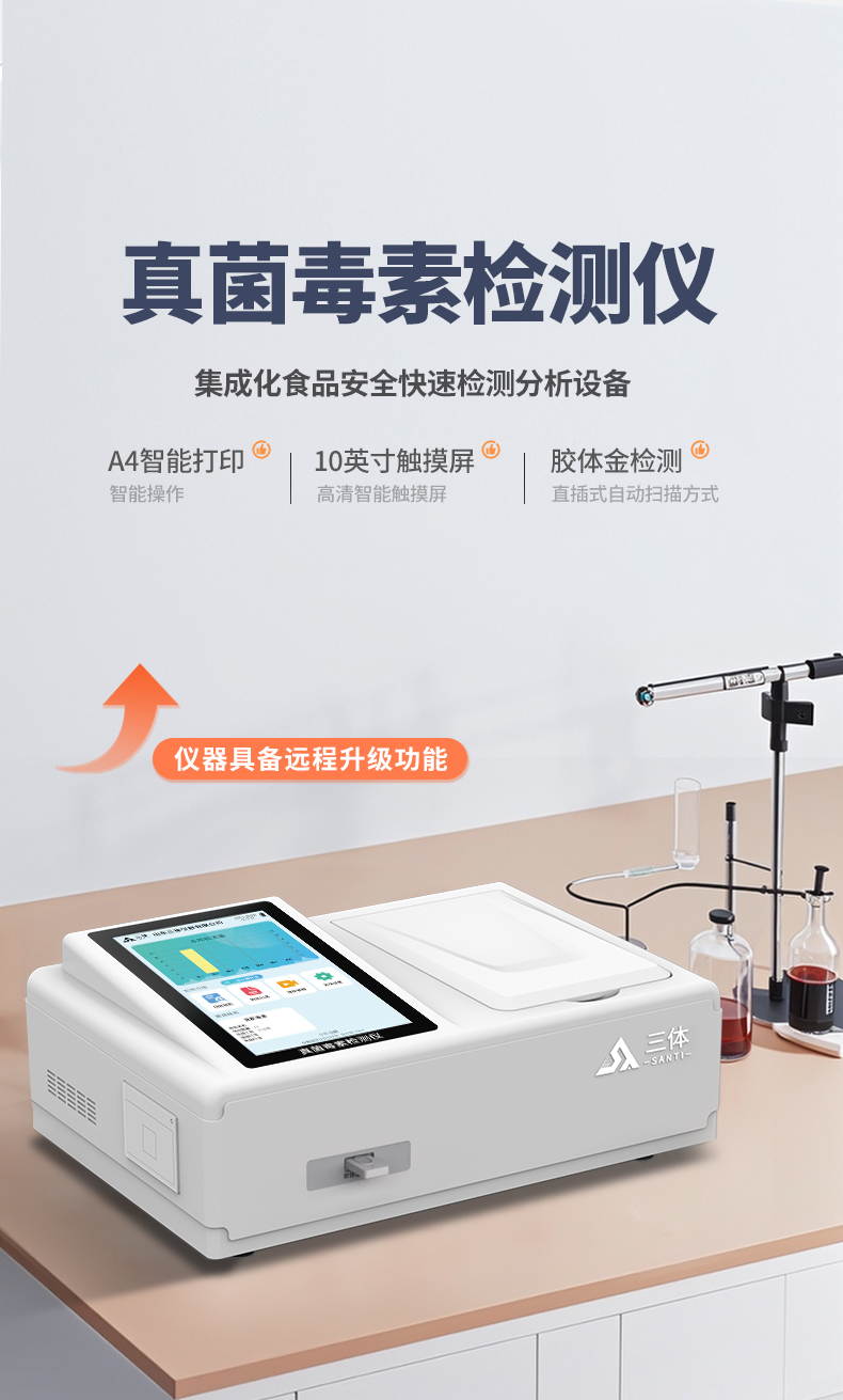 山東三體儀器有限公司生產(chǎn)的真菌毒素檢測(cè)儀應(yīng)用競(jìng)爭(zhēng)抑制免疫層析的技術(shù)原理,通過(guò)就是通過(guò)待檢測(cè)物與抗體結(jié)合的方法,分析待檢樣品中真菌毒素殘留。可快速檢測(cè)糧食、飼料、谷物、食用油、調(diào)味品中如玉米、大米、小麥、大麥、糙米、麩皮、稻谷、豆粕、米糠、飼料中的黃曲霉毒素B1、M1、總量,玉米赤霉烯酮、嘔吐毒素、T2毒素、赭曲霉毒素、伏馬毒素等。