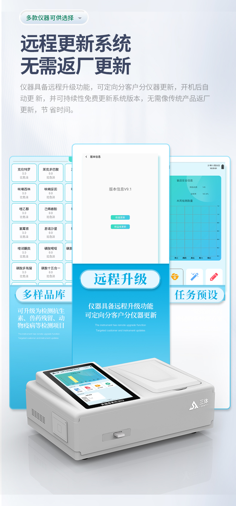 13、儀器具備遠(yuǎn)程升級(jí)功能,可定向分客戶分儀器更新,開(kāi)機(jī)后自動(dòng)更新,并可持續(xù)性免費(fèi)更新系統(tǒng)版本,無(wú)需像傳統(tǒng)產(chǎn)品返廠更新,節(jié)省時(shí)間及人力成本并避免了物流運(yùn)輸返廠升級(jí)導(dǎo)致設(shè)備損壞的潛在風(fēng)險(xiǎn)。