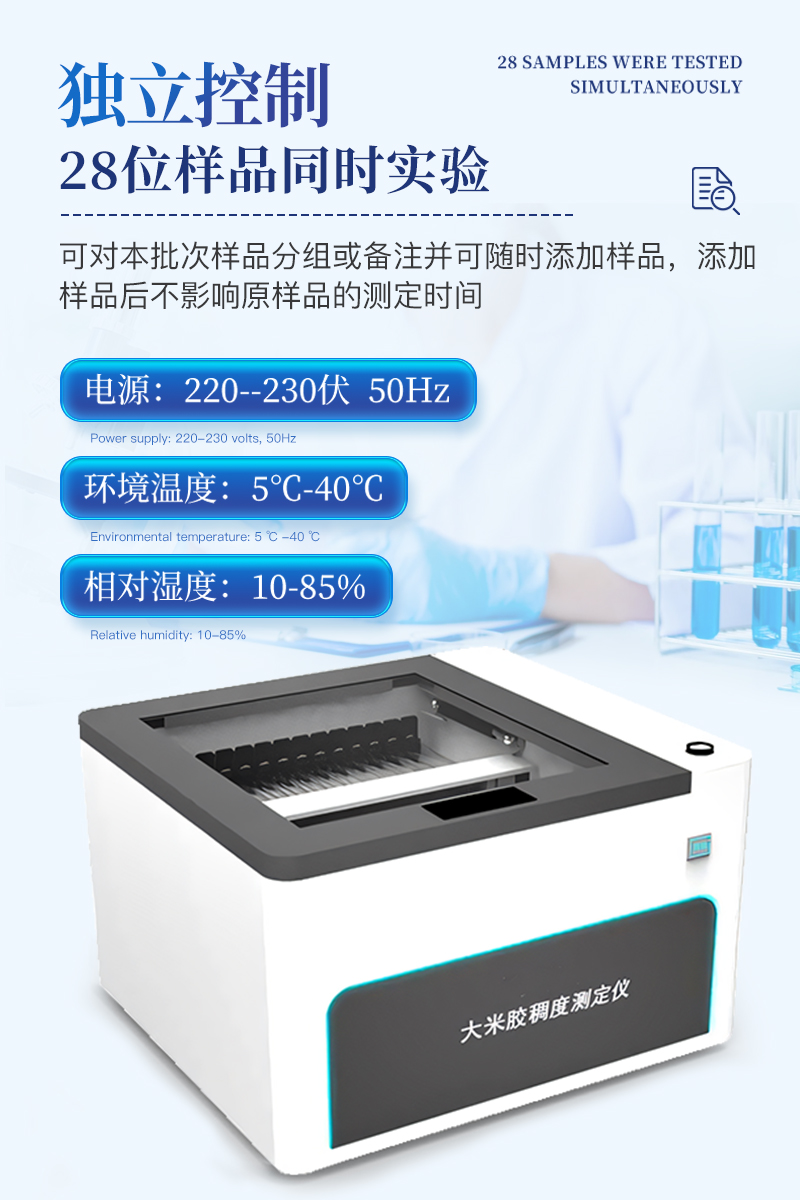 【產(chǎn)品簡介】1、用途:適用于糧油檢測大米膠稠度的測量2、工作條件:2.1電源:220--230伏, 50Hz;環(huán)境溫度:5℃-40℃;相對濕度:10-85%3、技術(shù)指標要求★全樣品位:28位,★工作站操作系統(tǒng):通···