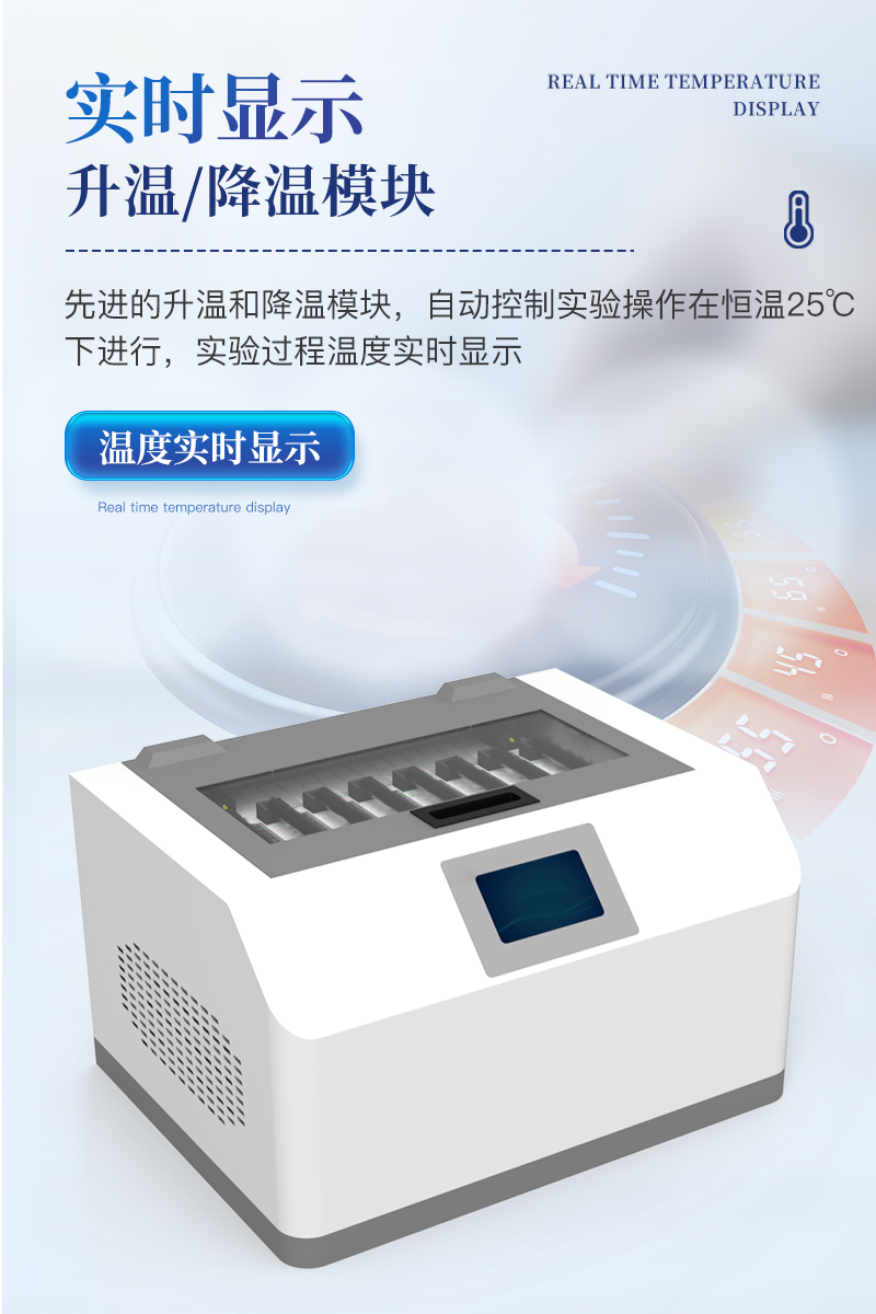 ★恒溫控制功能:**的升溫和降溫模塊,自動控制實驗操作在恒溫25℃下進行,實驗過程溫度實時顯示。