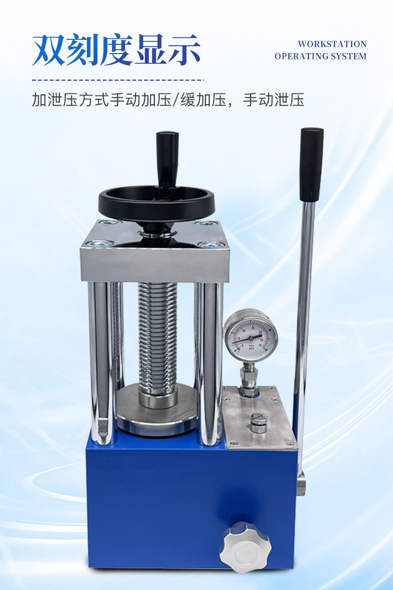 手動壓片機該機采用一體式結構,手動液壓驅動,兩立柱設計,具有造型美觀、操作方便、體積小巧、工作空間大等優(yōu)點,非常適合拖進手套箱內使用;配上特定模具,可對各種粉末材料壓制成型,廣泛應用于科研、教學、檢測、催化、制藥等各個領域。